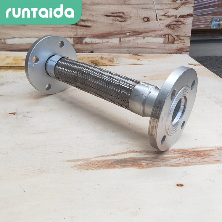 法蘭式金屬軟管的結構是:不銹鋼波紋管外編一層或多層鋼絲或鋼帶網套,兩端配以接頭或法蘭頭,用于輸送各種介質的柔性元件。該產品的作用是為一種柔性耐壓管件安裝于液體輸送系統中,用以補償管道或機器、設備連接端的相互位移,吸收振動可以量,可以夠起到減振、消音等作用。